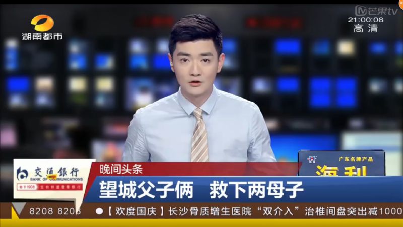 事件發(fā)生后,湖南都市頻道、望城區(qū)電視臺記者先后前往現(xiàn)場采訪了黃建兵父子,他們的先進事跡在《都市晚間》欄目播出,受到大家的贊揚。