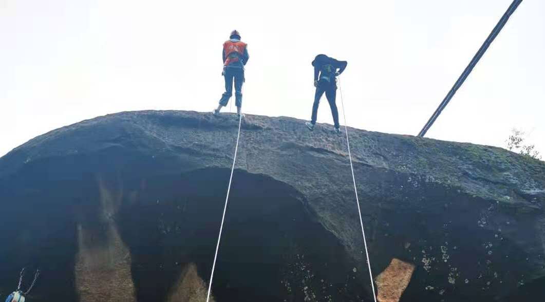 下午,在認(rèn)真學(xué)習(xí)了各項(xiàng)安全保障措施后,隊(duì)員們迎來了高空項(xiàng)目:絕壁橋和橋降。他們需要在20米的高空借助垂直的繩網(wǎng)通過長(zhǎng)約15米的山谷,然后借助繩索從山頭降落。這對(duì)大家來說是一個(gè)巨大的考驗(yàn),必須靠勇氣和毅力戰(zhàn)勝。雖然隊(duì)員中不乏恐高的,但是他們互相鼓勵(lì),互幫互助,不讓一個(gè)人掉隊(duì),充分發(fā)揮相山青年勇于挑戰(zhàn)、敢于拼搏的精神,成功克服內(nèi)心的恐懼,全員完成挑戰(zhàn)。